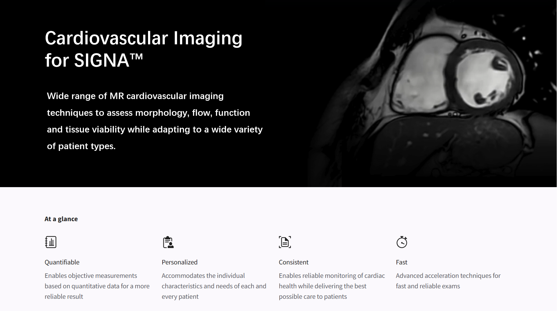 unBEATable SIGNA™ Cardiac MR Cardiac MR has been too slow, complex and inconsistent for too long1. Now with cardiac MR for SIGNA™, that’s all in the past. Experience accelerated diagnostics and crystal-clear imaging, powered by deep learning. From AI-boosted precision to lightning-fast scans, explore the seamless connection between innovation and patient-centric care..