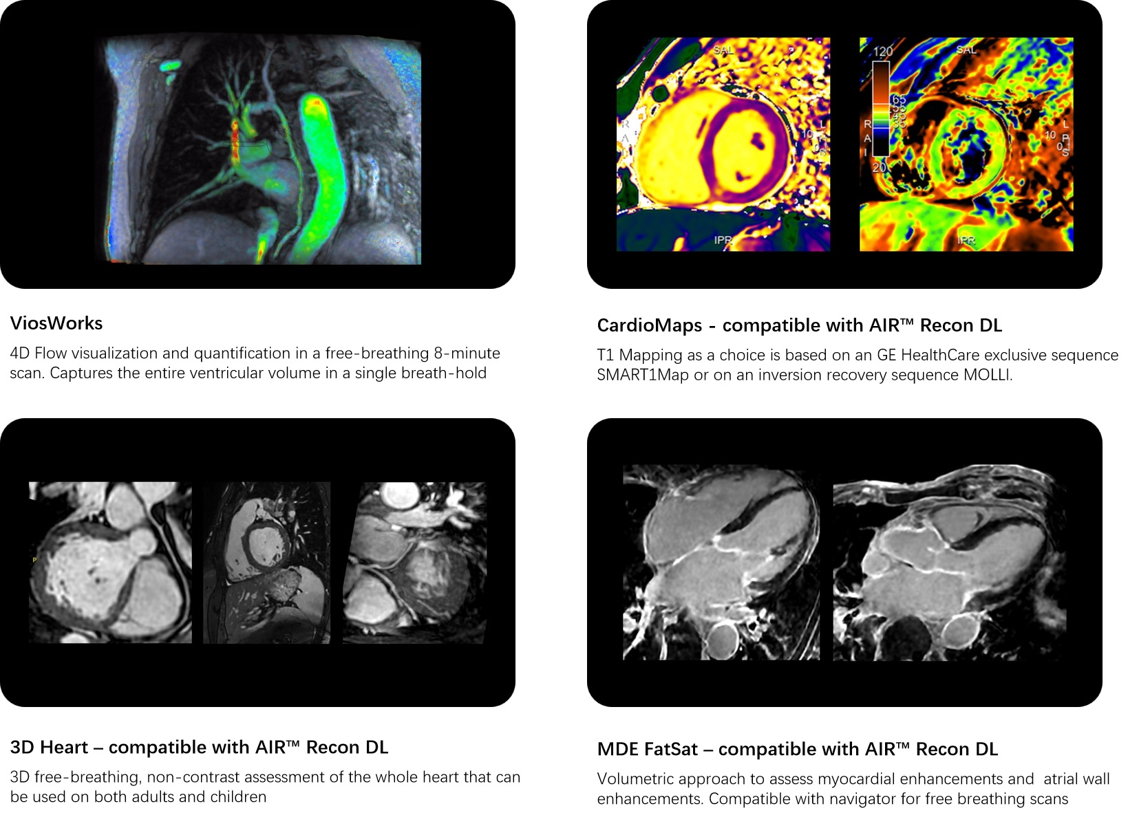 Wide range of MR cardiovascular imaging techniques to assess morphology, flow, function and tissue viability while adapting to a wide variety of patient types.